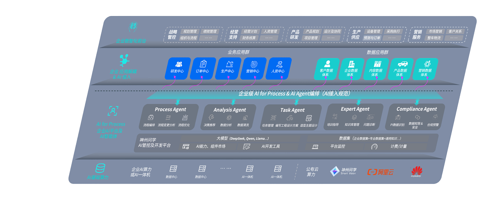 欧博ABG问学智车解决方案是一套基于AI技术的汽车行业智能化系统,,,,覆盖从底层算力到顶层AI应用的全栈方案。。方案由算力层、、模型层和应用层组成:算力层,,,方案支持多种一体机配置,,,具备云端灵活部署、、、多云适配以及动态优化计算资源的能力;模型层,,,,欧博ABG问学平台版提供了企业级AI应用一站式构建与管理平台,,支持基于后训练强化技术的汽车企业专属模型的训练、、评测和运营;应用层,,欧博ABG问学DeepSeek版提供包括超级员工、、智能招采、、、智能营销、、、、智能客服、、、、AI for BI等一系列解决方案,,可助力汽车行业实现数字化转型,,让管理更智能、、、、响应更敏捷。。。